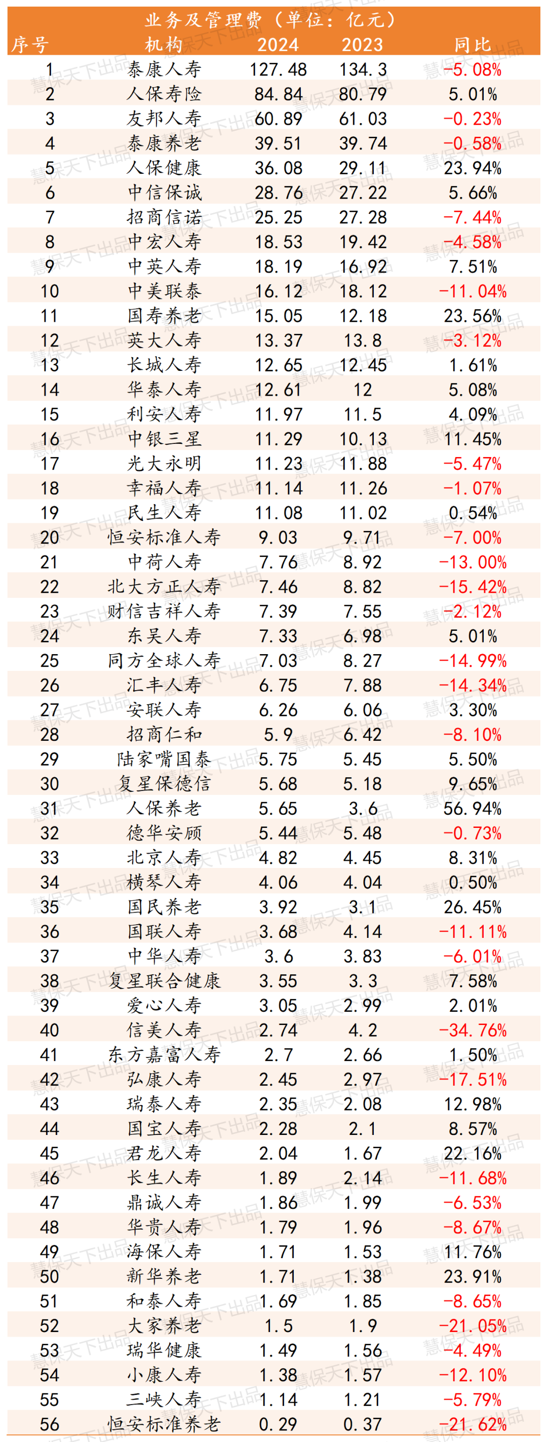 56家人身险公司业务及管理费保持平稳,但超半数险企费用压降