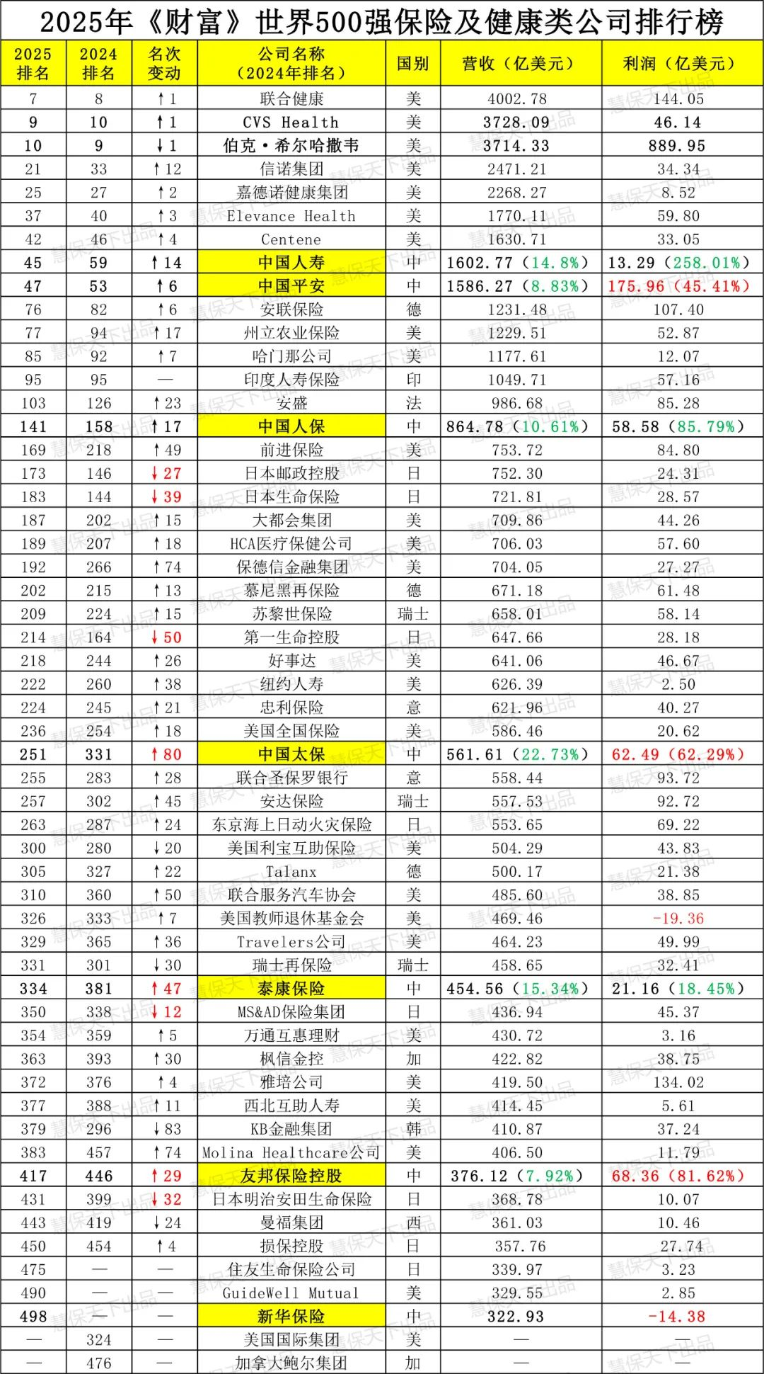 集体喜报!国寿跃升中国险企首位,平安人保太保泰康友邦排名也大幅上升,全球53家险企上榜2025《财富》世界500强行业动态