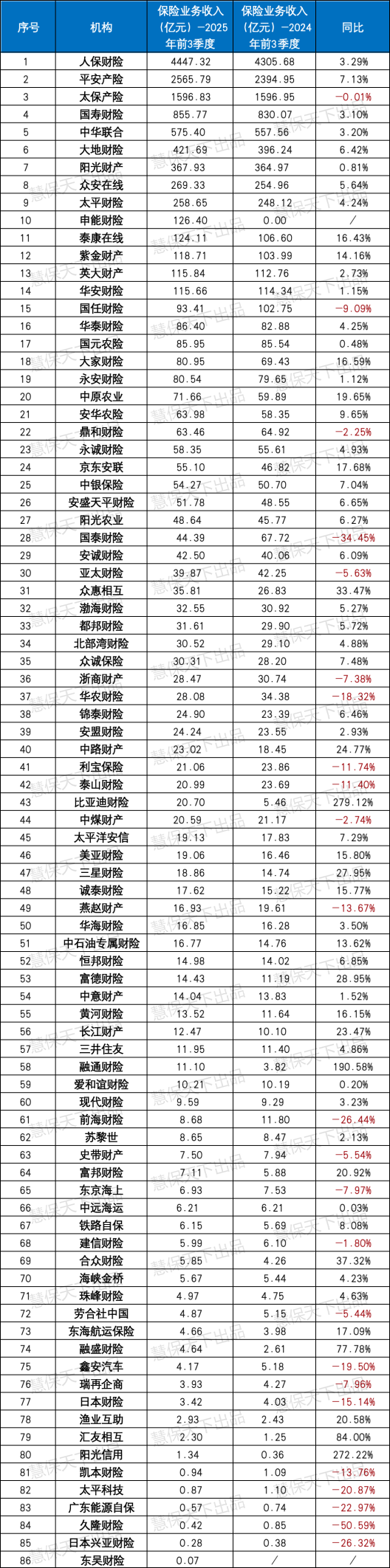 整体来看,前三季度财险业实现净利润同比52%的大幅增长,头部企业盈利贡献度持续攀升,行业扭亏为盈的基础不断夯实,但中小险企承保亏损普遍、部分机构偿付能力承压、净资产缩水等深层难题仍未根本解决,行业分化格局依旧显著。