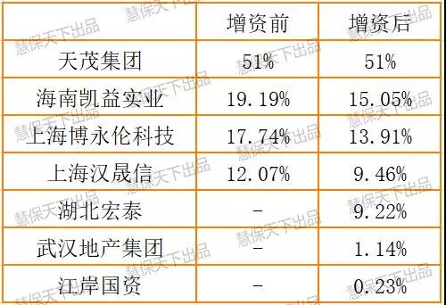 2018年10月,天茂集团引入湖北宏泰、武汉房地产集团和江岸国资3家湖北国企共同增资国华人寿,12月份确定增资数额,其中天茂集团增资48.45亿元。