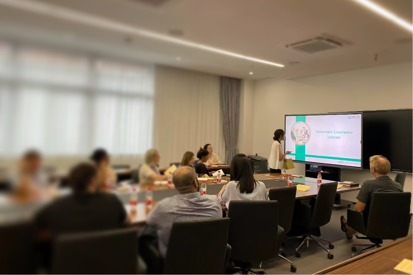 图:工作人员为宁波某学校外籍教师讲解保险保障方案