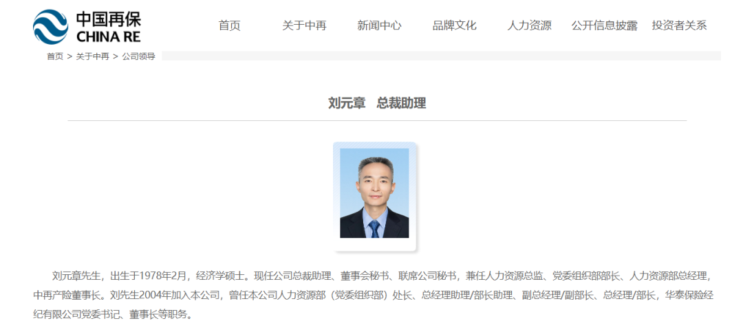 公开信息显示,刘元章1978年2月出生,经济学硕士,年仅47岁,其2004年就入职中再,至今已工作超20年。
