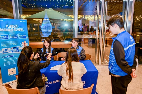 身着“太保蓝”的志愿者们也成为当晚一道温暖的风景线。在太保蓝公益展位前,志愿者们通过脑健康科普宣传、VR眼镜体验、AI眼动早筛及康养咨询等多元化服务,让现场嘉宾、客户在轻松愉悦的氛围中收获科学健脑方案,切身感受“保险+健康”服务生态的创新价值。