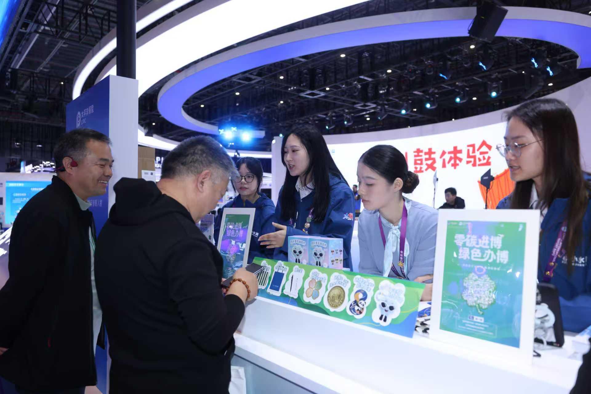 “扫描二维码记录碳足迹,地铁出行还能换碳积分。没想到逛进博会还能解锁绿色生活新体验。”在中国太保展厅内,观众王小姐对着手机屏幕连连点赞。她刚刚通过“太保碳普惠”小程序完成个人碳减排量核算,屏幕上弹出的“已抵消0.002吨碳排放”字样,为这场进博之旅增添了绿色。