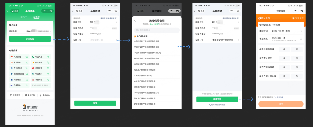 延续“连接即服务”在医疗理赔场景中追求无感体验的逻辑,腾讯微保将这一理念同样扩展至车险理赔这一更加高频的领域。与医疗理赔聚焦于支付环节不同,车险理赔服务的用户痛点更加前置。
