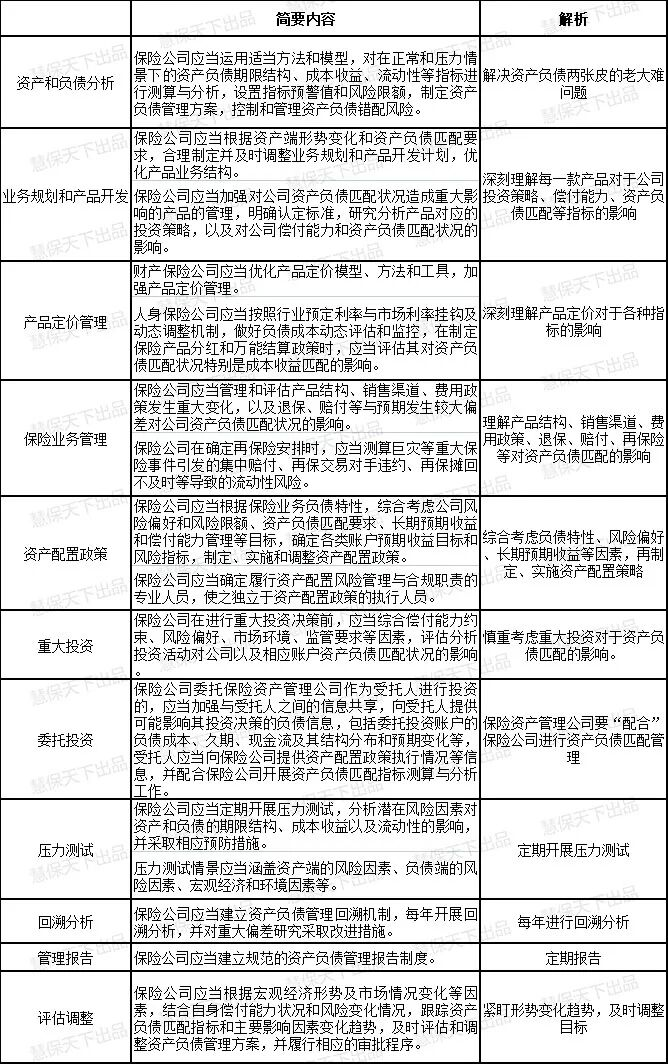 《征求意见稿》要求保险公司制定资产负债管理方案,在业务规划、产品开发和定价、保险业务管理、资产配置政策、重大投资等环节加强资产负债联动,开展压力测试和回溯分析,定期编制报告,并对资产负债管理策略做出及时调整。