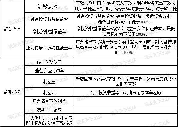 设立监管指标和监测指标:结合新会计准则和偿付能力规则调整,设立资产负债监管指标,明确指标阈值:新增部分监测指标,设置差异化的预警区间,适时进行风险提示